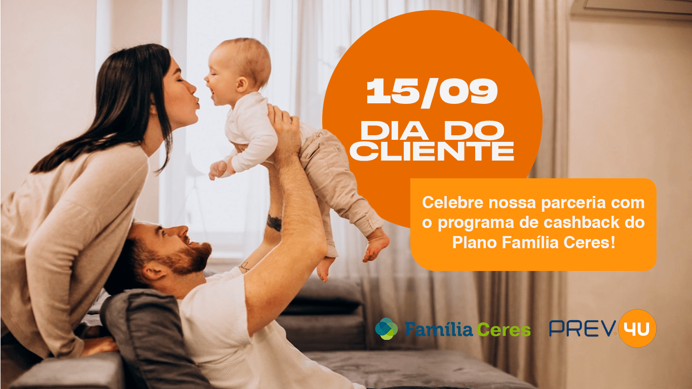 O programa de cashback é uma exclusividade do plano Família Ceres! São mais de 450 lojas com percentuais de cashback podem chegar a 30% do valor gasto. Além disso, você obtém vários descontos nos sites parceiros. Aproveite as promoções do Dia do Cliente e acumule mais dinheiro para curtir na aposentadoria.